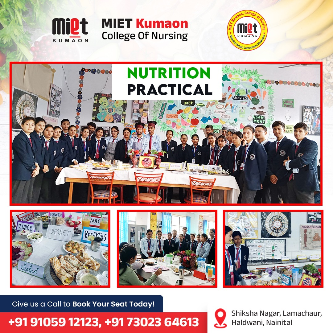 The Nutrition Laboratory at MIET Kumaon College of Nursing provides students with practical knowledge of nutrition, diet planning, and therapeutic dietary management. The lab helps students understand the importance of balanced nutrition in promoting health, preventing diseases, and supporting patient recovery.