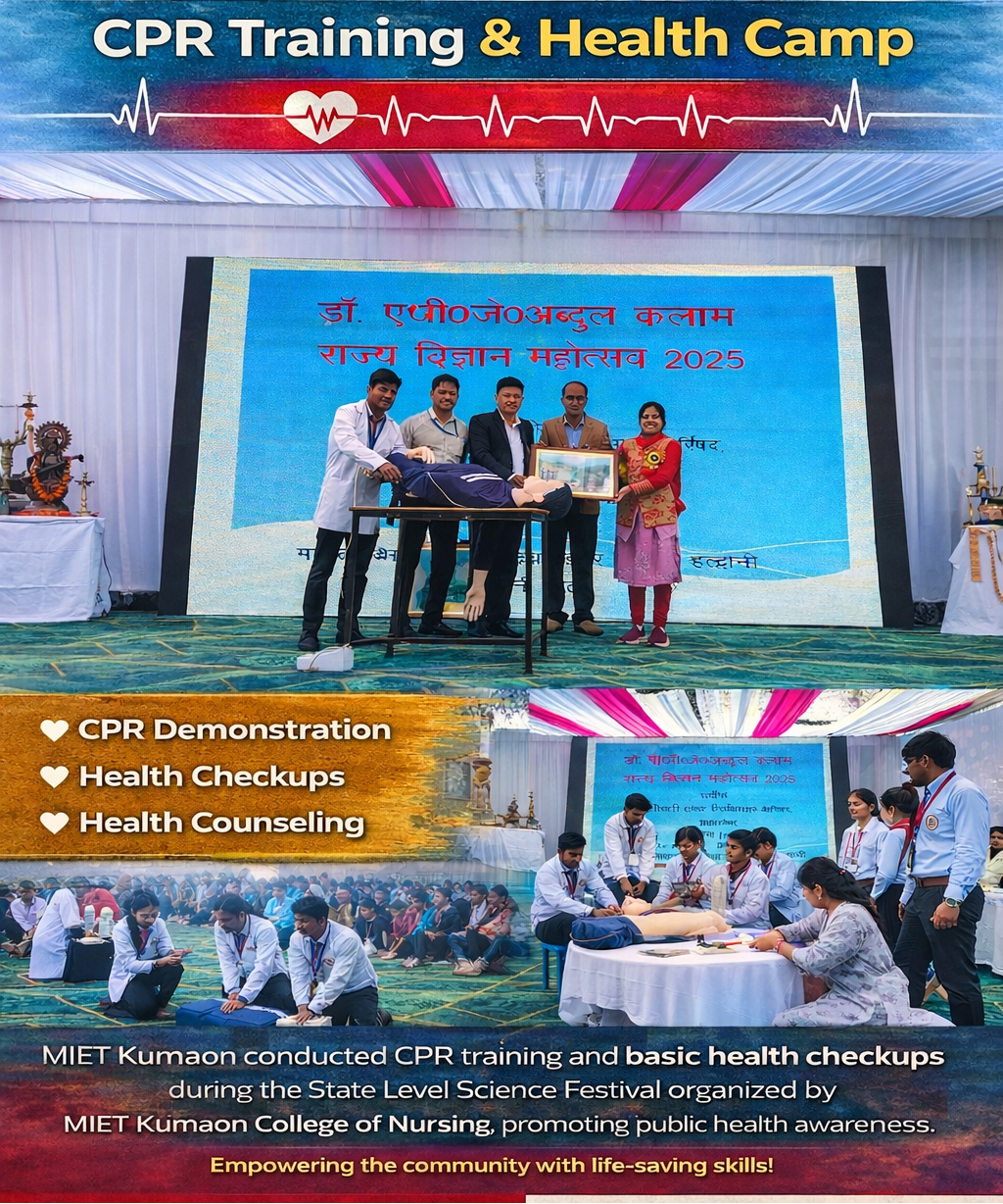 MIET Kumaon College of Nursing takes pride in the achievements of its students and faculty in academics, research, clinical training, and co-curricular activities. Students actively participate in seminars, workshops, and healthcare initiatives, reflecting the college’s commitment to excellence in nursing education and professional development